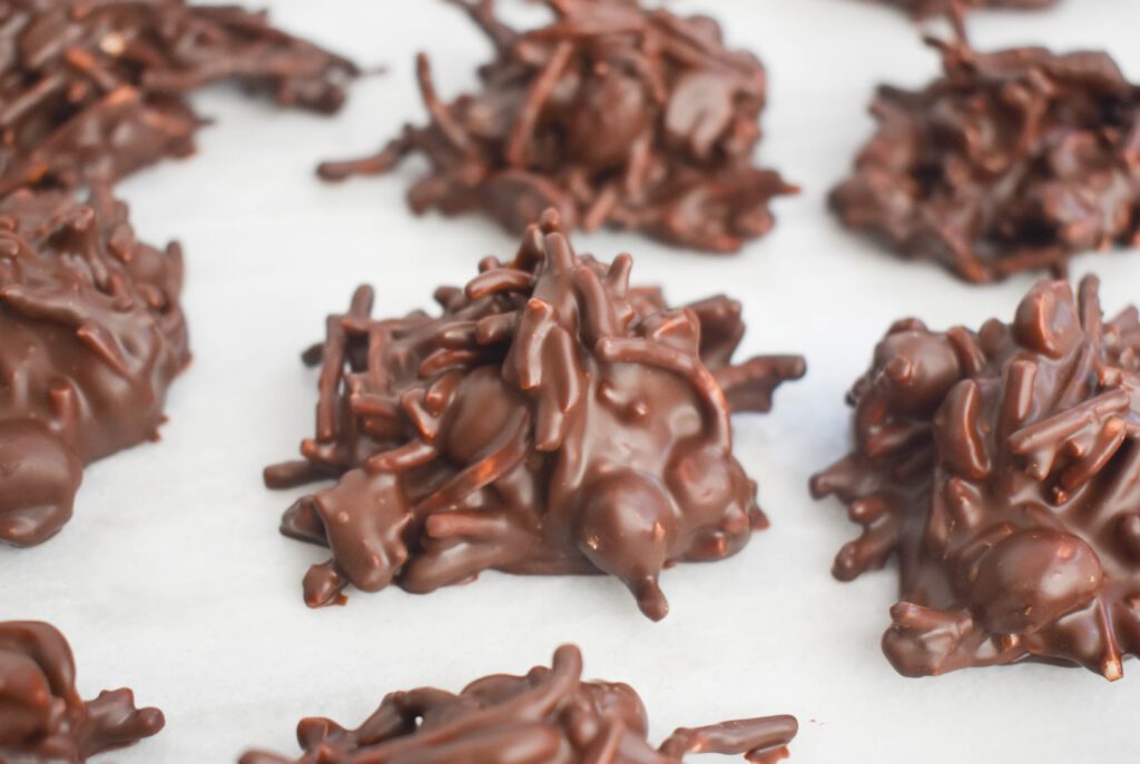 - Using a small cookie scoop, drop in small mounds onto your prepared baking sheet, and allow to harden at room temperature (can also be refrigerated, but rapid changes in the temperature can cause chocolate to ‘bloom’ or turn white)