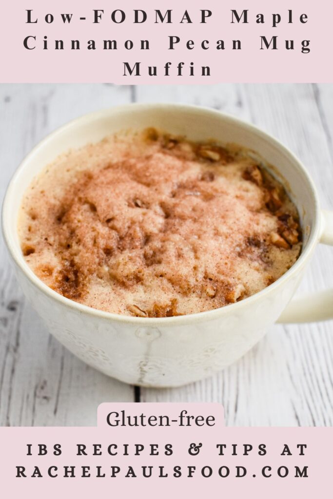 A delicious, low-FODMAP Maple Cinnamon and Pecan Mug Muffin in under 5 minutes using the microwave. Gluten-free and dairy-free.