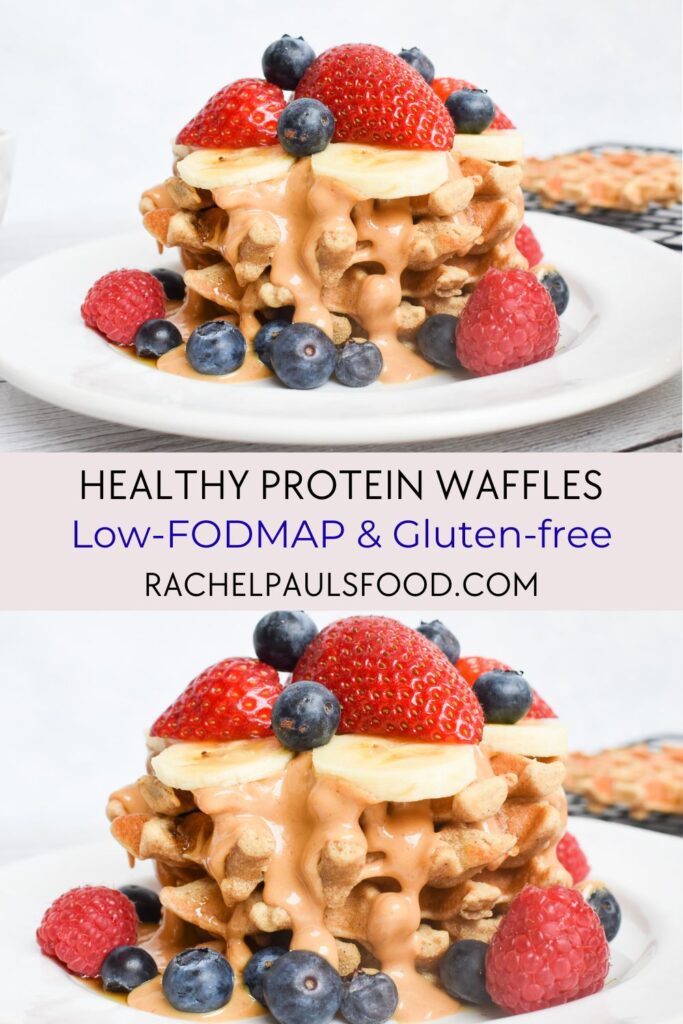 A healthy low-FODMAP recipe for delicious, light and fluffy protein waffles. Gluten-free and so easy! Perfect for the whole family.