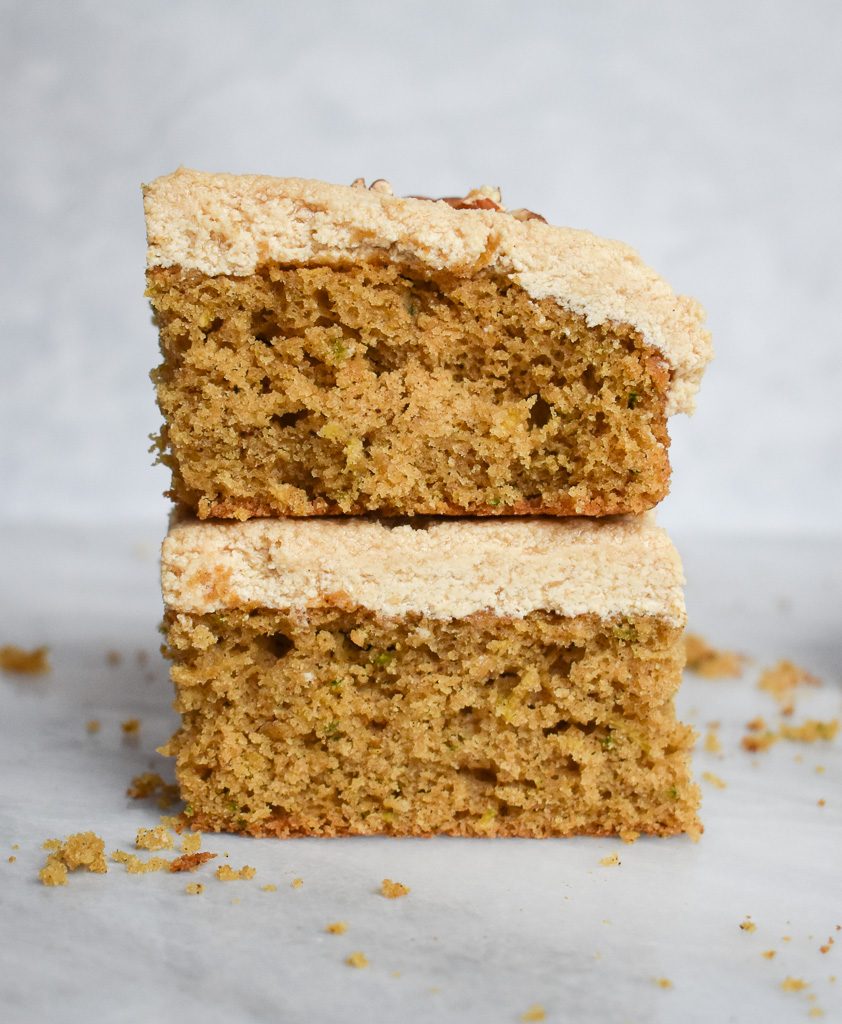 Low-FODMAP Spiced Zucchini Cake with Low-FODMAP Brown Sugar Cream Frosting; Gluten-free, Dairy-free
